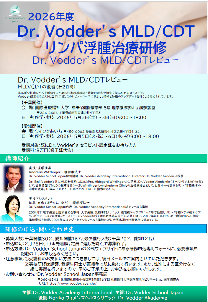 2026年5月にオーストリア本校校長アンドレアス・ウィットリンガー先生を招聘し、Dr. Vodder Academy Internationalのレビューコースが日本で開催されます。